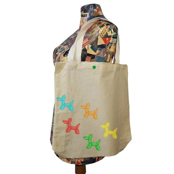 La bolsa es 100% de algodón tanto el lienzo de la bolsa como las asas/manijas que son de cinta.